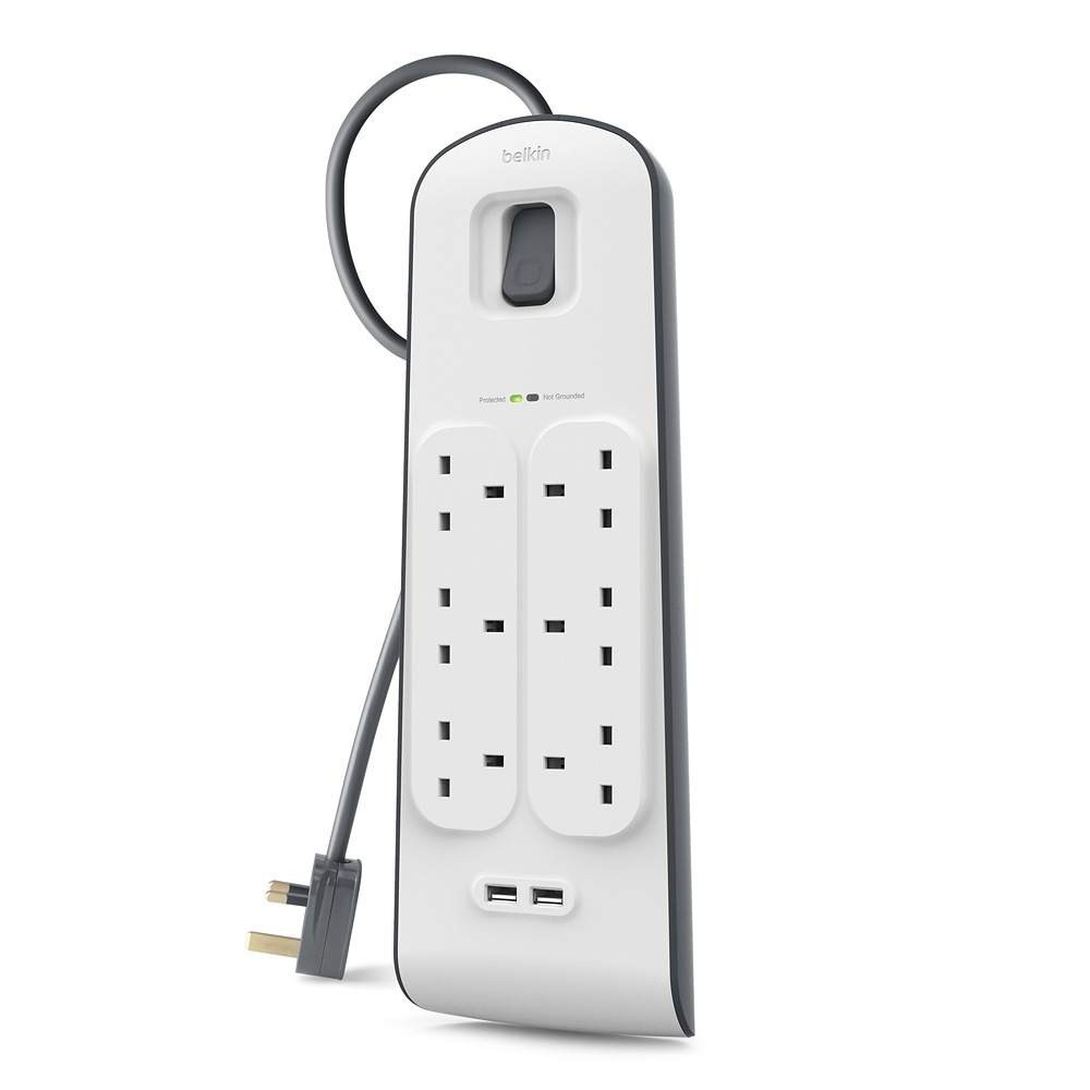 يحافظ شريط Belkin Surge Protection Strip على الأجهزة المتصلة بأمان مع حماية ثلاثية الخطوط للتيار المتردد. هذا النوع من الحماية يحمي من الارتفاعات المفاجئة التي تحدث بين الخطوط الساخنة والمحايدة والأرضية.