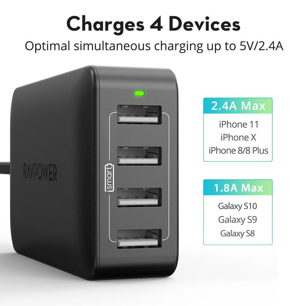 نوع المنافذ : 4x USB A : DC 5V::8A Total (Each 2.4A Max)