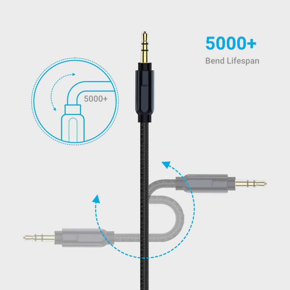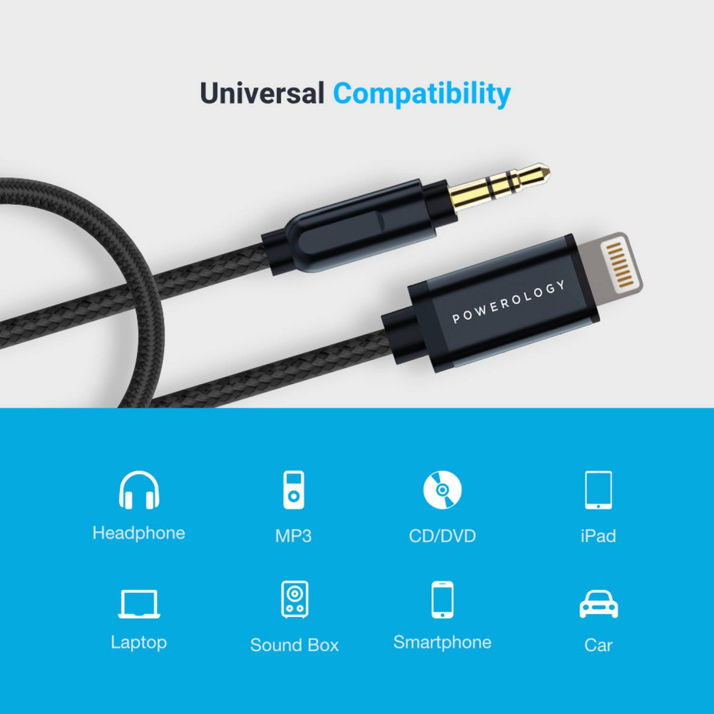 باورولوجى - كيبل صوت - AUX 3.5mm - مضفر من الالمونيوم (1.2 متر /4 قدم) - اسود