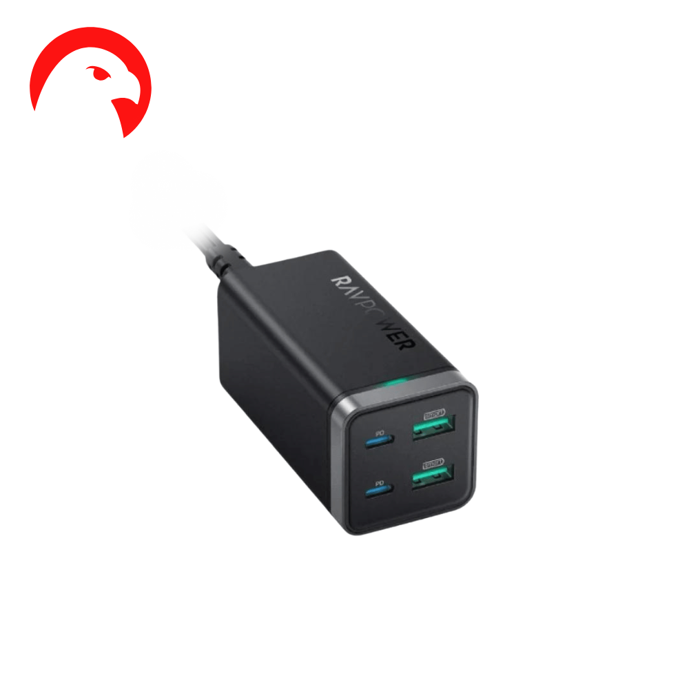 منصة شحن راف باور 65 واط هي الخيار المثالي لشحن جميع أجهزتك في نفس الوقت. توفر المنصة شحنًا سريعًا وفعالًا بفضل تقنية GaN. تحتوي المنصة على 4 منافذ: 2 USB-C PD بقوة 65 واط و 2 USB-A بقوة 18 واط.