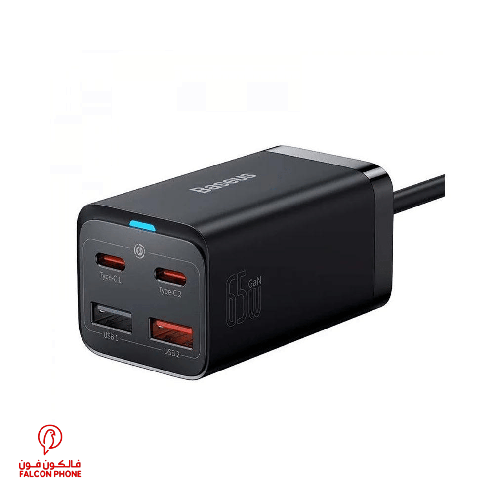 وداعاً للشواحن المتعددة! مع منصة شحن بيسوس جين برو 65 وات، يمكنك شحن جميع أجهزتك الإلكترونية في وقت واحد بفضل تقنية GaN3 الحديثة التي تمنحك 4 منافذ شحن (2 USB-C و 2 USB-A) بقوة إجمالية تصل إلى 65 وات.