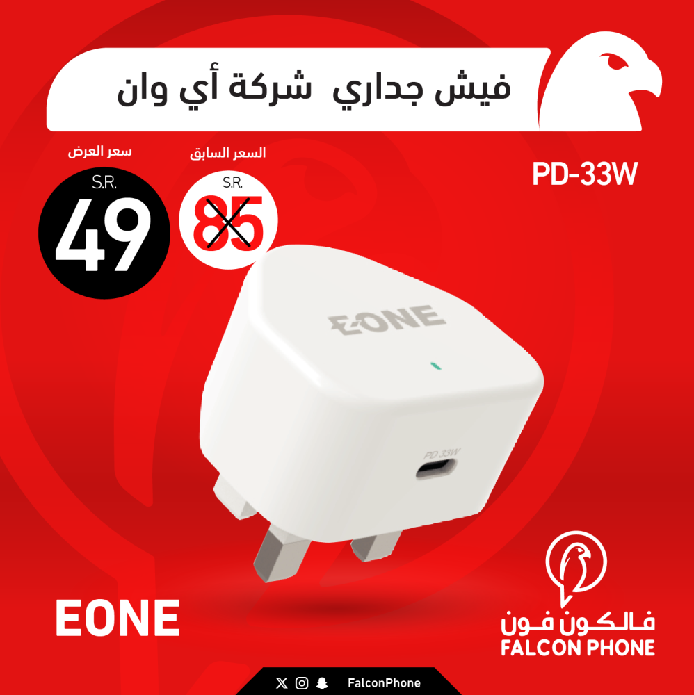ودّع شحن هاتفك لفترات طويلة مع فيش جداري PD-33W من شركة EONE. يتميز هذا الشاحن بتقنية الشحن السريع Power Delivery 3.0، مما يوفر لك شحنًا سريعًا لأجهزتك المتوافقة.