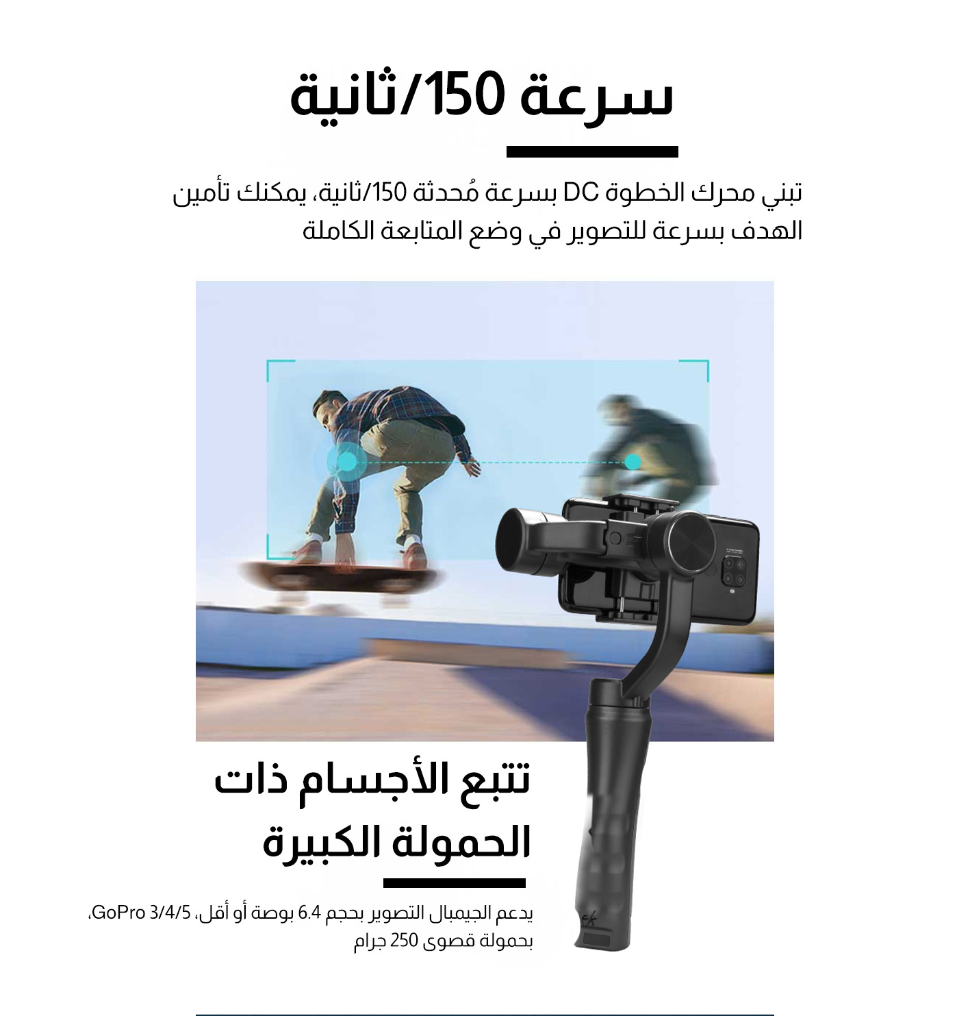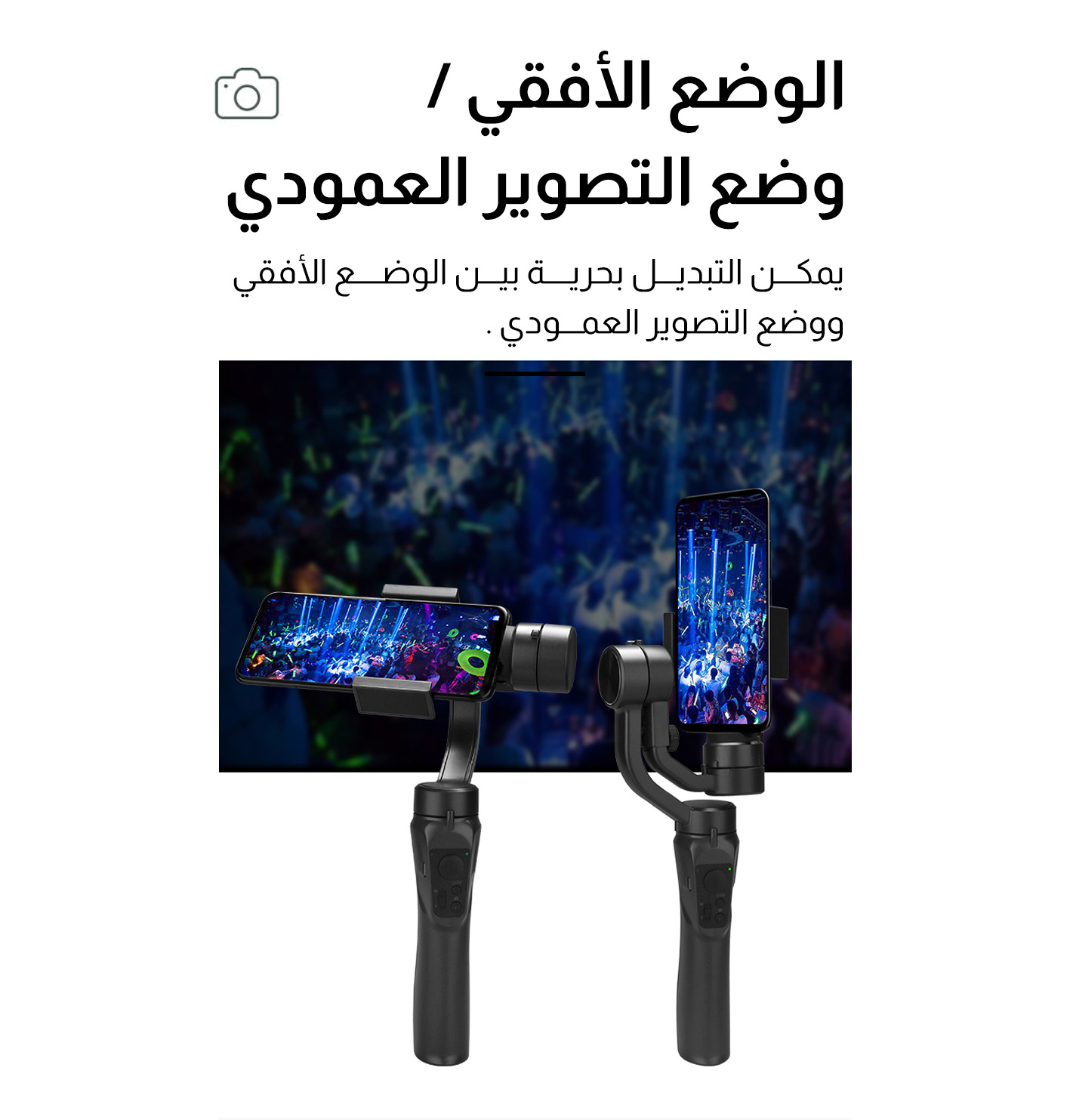 مميزات عصا سيلفي للهواتف الذكية بتثبيت بتقنية جيمبال - مانع اهتزاز Axis-3 بتقنية جيمبال :