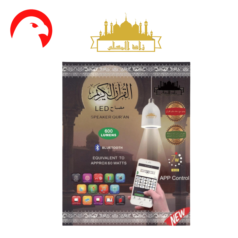 • تلاوة القرآن الكريم: يحتوي المصباح على تلاوة كاملة للقرآن الكريم بصوت 18 قارئًا مختلفًا.