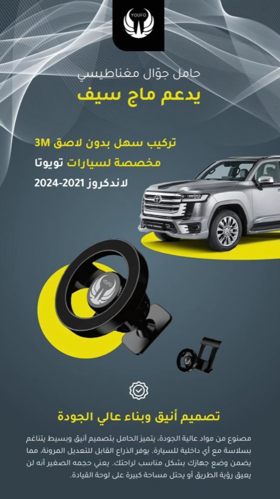 🧲 YOUFO – حامل مغناطيسي لاند كروزر ( موديلات 2021–2024 ) يدعم MagSafe